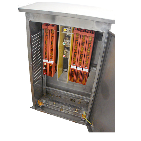 The cable branch box is assembled by component modules and frame assembly structure, and the bus bar and the feedthrough are insulated and closed. Five types of structure can be used: the insulated switch with insulated insulation for the incoming line, the molded case circuit breaker for the outgoing line, the insulated switch with insulated switch for the incoming line, and the knife-melt switch for the outgoing line; the strip-shaped isolating switch for the incoming line and the strip for the outgoing line Switch (with fuse protection); the input line does not have a switch, the outlet line uses a knife fuse switch; the input and output lines are not equipped with switches. Note: The housing has metal or non-metal SMC.Details