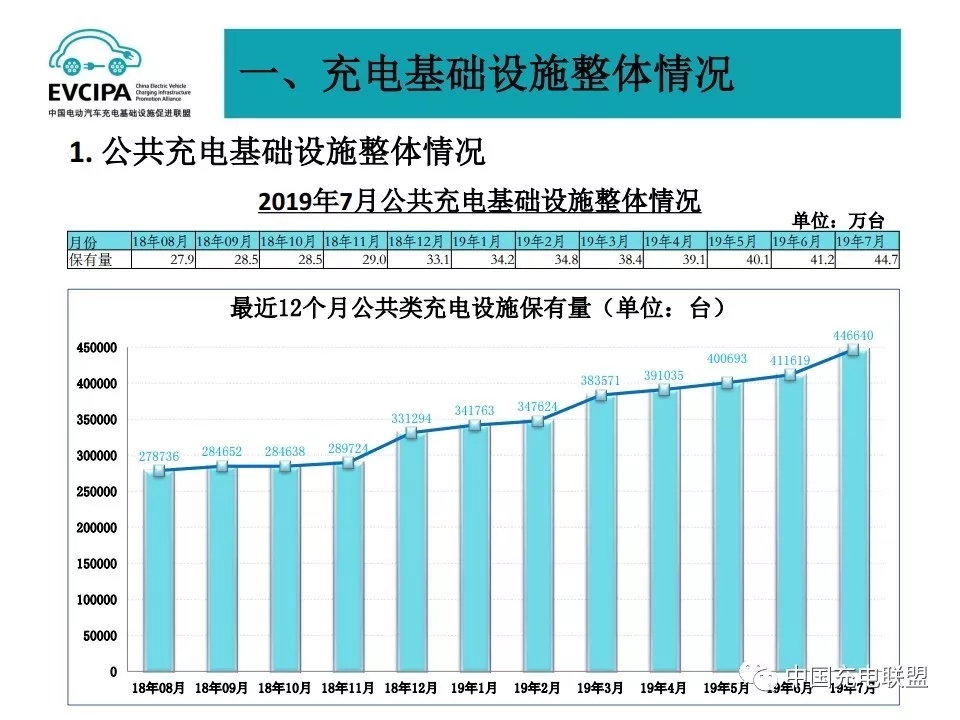 2019年8月12日下午,中國電動(dòng)汽車充電基礎(chǔ)設(shè)施促進(jìn)聯(lián)盟(以下簡稱“充電聯(lián)盟”)2019年7月全國電動(dòng)汽車基礎(chǔ)設(shè)施運(yùn)行情況信息發(fā)布會(huì)在京召開,來自新華社、中央電視臺(tái)等80多家媒體的記者參加了本次發(fā)布會(huì)。充電聯(lián)盟信息部主任仝宗旗介紹了2019年7月全國電動(dòng)汽車充電基礎(chǔ)設(shè)施運(yùn)行情況。截止2019年7月公共充電樁保有量為44.7萬臺(tái),相比6月新增3.5萬臺(tái)。