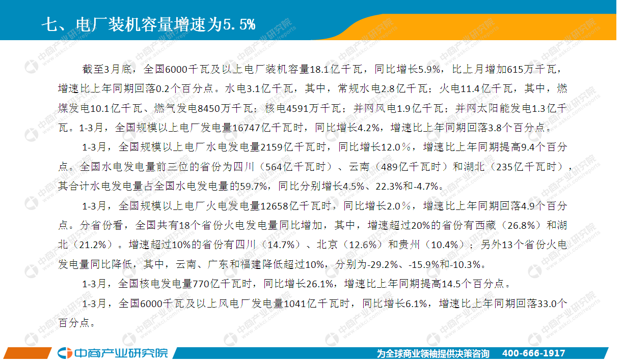 2019年一季度中國電力行業(yè)運行情況月度報告
